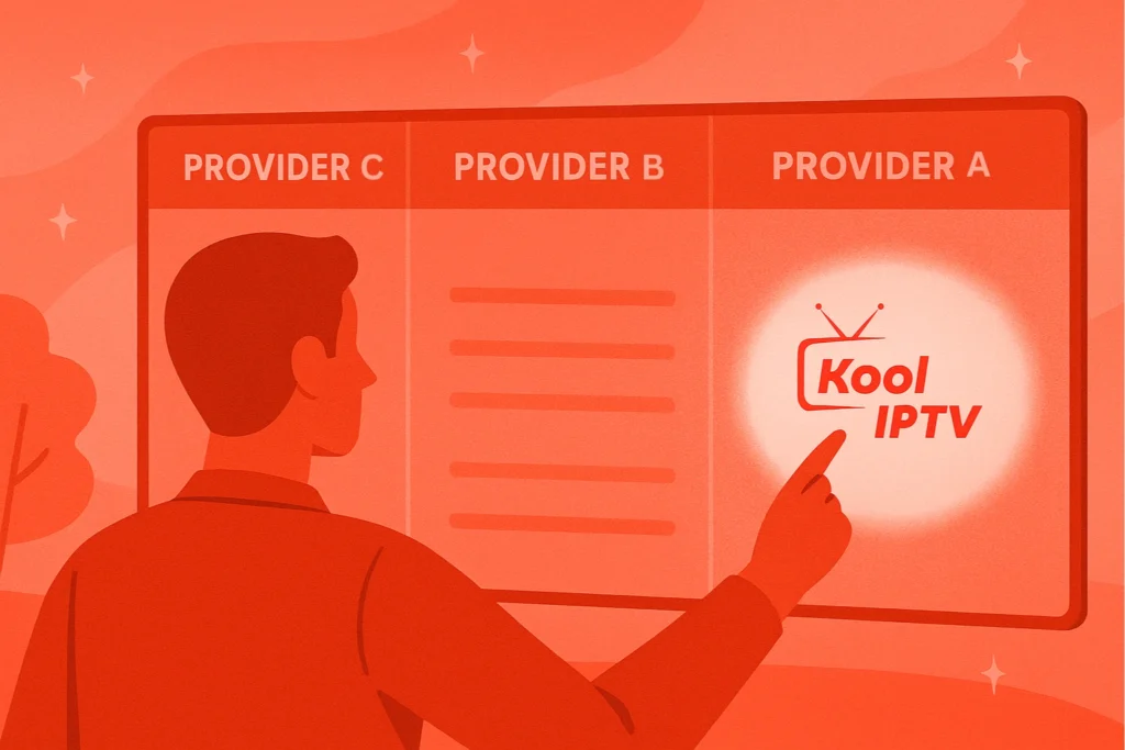 Molti provider, come Kool IPTV, offrono soluzioni flessibili per guardare su più dispositivi — TV, telefono, tablet o PC — a un prezzo conveniente.